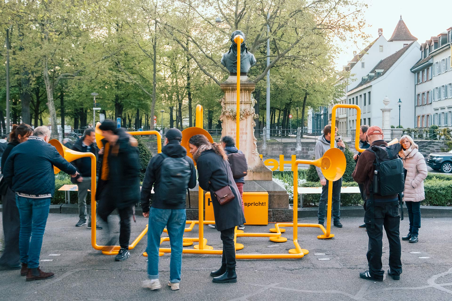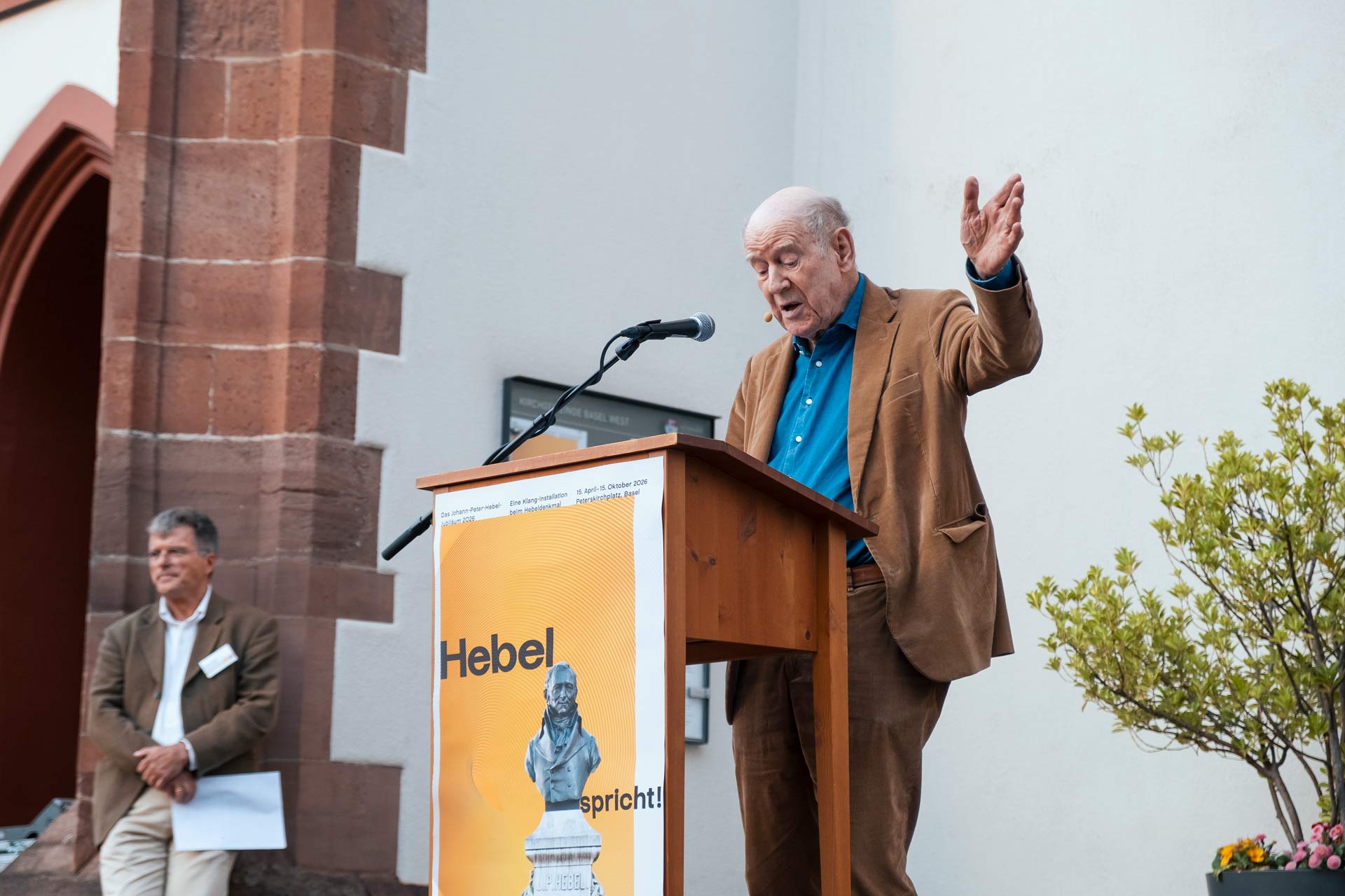 Überraschung! Zum 2OO. Todestag von Johann Peter Hebel beginnt die Büste auf dem Sockel zu sprechen, das Denkmal auf dem Basler Peterskirchplatz wird laut: Hebel erzählt, fragt, sucht, zweifelt, notiert, stolpert, träumt und staunt. Wer stehen bleibt und dieser verspielten Klang-Installation lauscht, bekommt hautnah so einiges mit aus dem Leben dieses Dichters und Denkers.